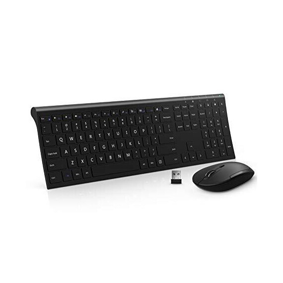 Wireless Keyboard Mouse, Jelly Comb 2.4GHz Ultra Slim Full Size Rechargeable Wireless Keyboard and Mouse Combo for Windows, Laptop, Notebook, PC, Desktop, Computer (Black)
