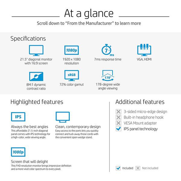 HP Pavilion 21.5-Inch IPS LED HDMI VGA Monitor & AmazonBasics Mini DisplayPort (Thunderbolt) to HDMI Adapter Bundle