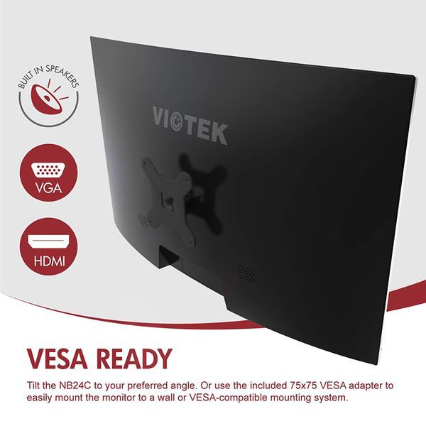 VIOTEK NB24CB 24-Inch LED Curved Monitor with Speakers, Bezel-Less Display, 75Hz 1080P Full-HD FreeSync VGA HDMI VESA - Xbox Ready (Black)