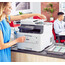 as of 7/17/15 seems that the heat generated by the printer is actually melting the drum set - so now another several hundred dollars to replace those.....this thing was an expensive hunk of junk. it would be cheaper to just buy another printer which is exactly what I may do. as of 6/11/15 Im updating my review and lowering my 2 star review to a one star. I noticed I was going through color cartridges very quickly even though I rarely print in color these days because of the poor quality and after some testing and close monitoring I have realized that if you dont have your settings on b&w the printer will use a mix of black and colored ink to print everything! a total waste of money! - be careful with your settings on this printer! original review: thought Id try a laser printer, but Im not loving this one... I print out 50 -75 sheets of paper each day and this is my experience over about 4 months. I go through expensive ink just about as often as I did with my other printers and ink is oddly hard to find. Ive had several bad experiences buying ink - receiving empty cartridges from shady sellers here on Amazon. The tray capacity for print out is only about 25 sheets so if your not there to catch it, it will over flow, spurt out sheets and jam. It can easily overheat after about 25 sheets and stop - it start again...but its unnerving when youre trying to work. I miss being able to print on both sides of a sheet. Its huge and heavy and the set up for fax is tricky. color print outs are not particularly clear or crisp - very muddy. if it last longer than my old epsons - which I normally go through about once every year to year and a half then that will be the only advantage, but for the price difference the perks of the ink jets will make me go back.