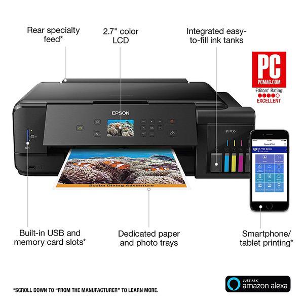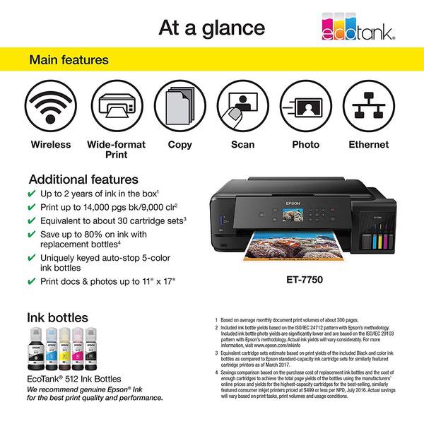Epson Expression Premium ET-7750 EcoTank Wireless Wide-Format 5-Color All-in-One Supertank Printer with Scanner, Copier and Ethernet