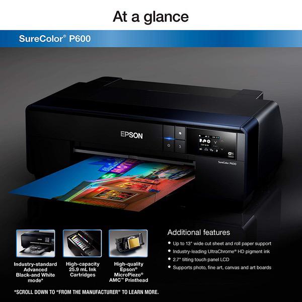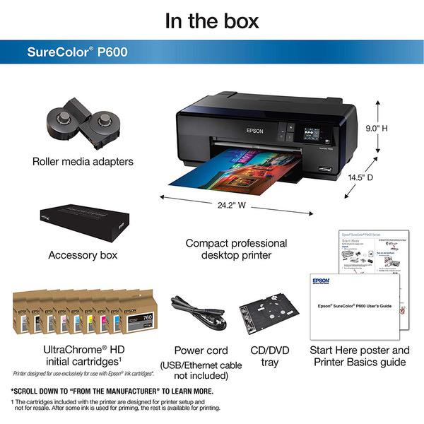 As has been often the case with Epson high-cost photo printers over the last few years, this printer would not recognize the original manufacturer ink cartridges and charge them so that a test print could be made. Taking out the cartridges and reinstalling achieved the same result. Also, voiding he installation and starting it over again resulted in a cartridge charging stage that would not operate because the printer claimed that there were no cartridges in the printer. This is why I am going to bite the bullet and spend a lot more for a professional Canon photo printer at nearly twice the cost. The previous Epson printer, the R3000, lasted about 3.5 years before the print head said bye-bye. High end Epson products simply have poor manufacturing quality control -- there is no other way around this conclusion. Finally, be warned about 6th Avenue Electronics. They are honoring my Amazon Prime return of this P600 printer, but please be aware that THEY WILL NOT PAY TO PICK UP THE PRINTER!! You have to lug it to the nearest UPS dropoff point. For me in semi-rural NC, that is a 64 mile round trip in and out of Wilmington NC.