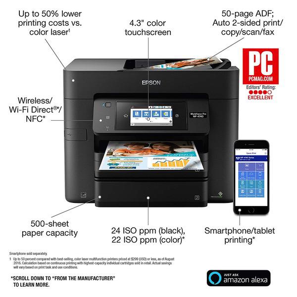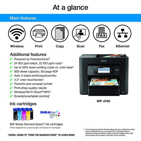 Epson Workforce Pro WF-4740 Wireless All-in-One Color Inkjet Printer, Copier, Scanner with Wi-Fi Direct, Amazon Dash Replenishment Enabled