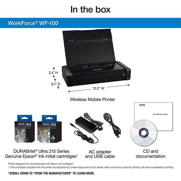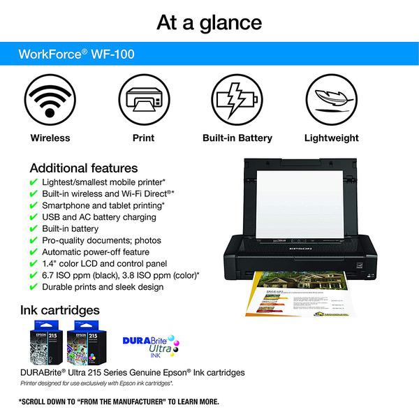Epson Workforce WF-100 Wireless Mobile Printer, Amazon Dash Replenishment Enabled