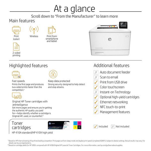 HP LaserJet Pro M452dw Wireless Color Laser Printer with Duplex Printing (CF394A) with High Yield Black Toner Cartridge