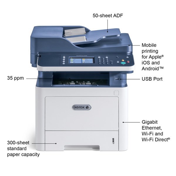 Xerox 3335/DNI WorkCentre Monochrome Multifunction Printer, Blue/White