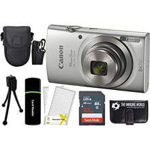 Canon PowerShot ELPH 180 20MP 8X Zoom Digital Camera (Silver) + 32GB Card + Reader + Case + Accessory Bundle