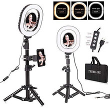 Dimmable Ring Light with Adjustable Height Light Stand,Selfie Stick and USB Plug,6" 3200K~5500K Beauty Table Top Lamp with Makeup Mirror,Mini Tripod and Phone Clamp, Perfect for...