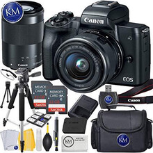 Canon EOS M50 Mirrorless Camera w/15-45mm and 55-200mm (Black) + 2 x 32GB + K&M Deluxe Photo Bundle