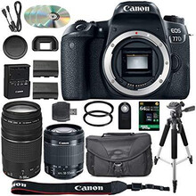 Canon EOS Rebel T7i Digital SLR Camera 18-55mm STM Lens + Canon EF 75-300mm III Lens + Ritz 64GB + 60" Tripod + Filter Kit + Bag + Microphone + Accessory Bundle
