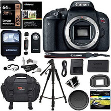 Canon EOS Rebel T7i Camera Body, Lexar 64GB Memory Card, Polaroid Tripod, Ritz Gear SLR Camera Bag, Polaroid UV Filter, Flash and Accessory Bundle