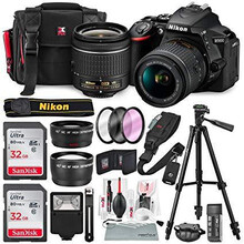 Nikon D5600 DSLR Camera with 18-55mm Lens W/ 2x 32GB Memory Card + Filters + 55mm Telephoto & Wide-Angle, Quick Release Shoulder Strap + Xpix Lens Handling Accessories with Delu...
