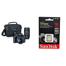 EOS REBEL T7 EF18-55mm + EF 75-300mm Double Zoom KIT and SanDisk 16GB Extreme SDHC UHS-I Memory Card