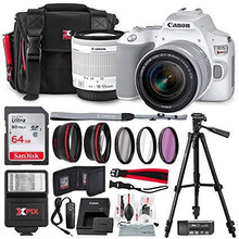 Canon EOS Rebel SL3 DSLR Camera (White) with 18-55mm Lens + Telephoto & Wideangle Lens + 64GB + Cases + Filters and Premium Accessory Bundle