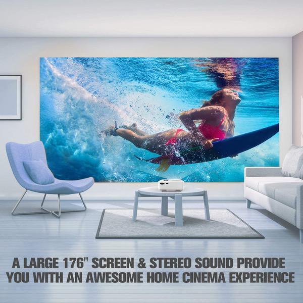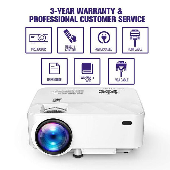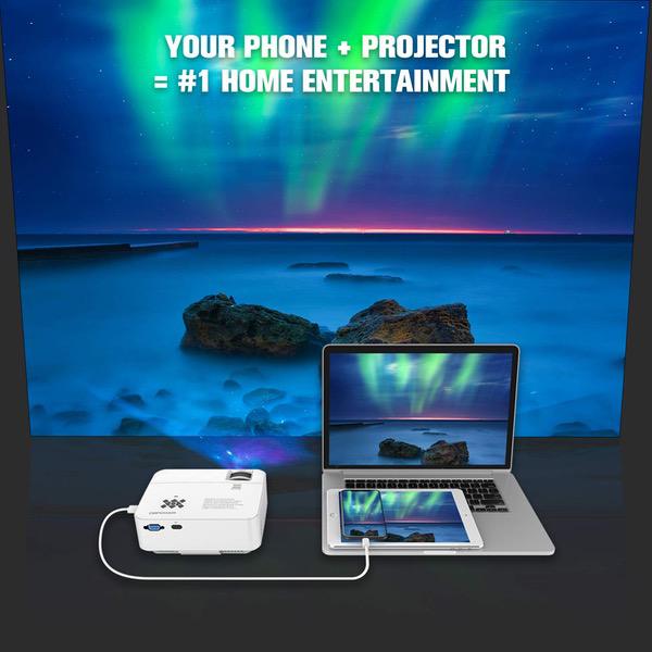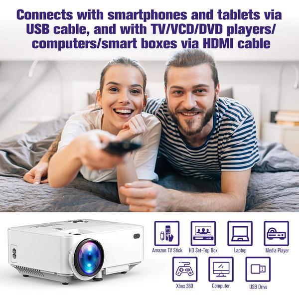 2019 Upgraded Mini Projector, DBPOWER 2400Lux Portable Video Projector for Home Theater, Support Screen Mirror with Smartphone & Pad, 1080P/HDMI/VGA/USB/TV Box/Laptop/DVD/External Speaker Supported