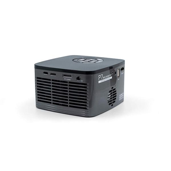 - All-in-One portable projector featuring an Onboard Media Player with USB and TF card ports and a 2W speaker for direct media playback. Other inputs include HDMI, mini-VGA, and Composite AV. Measures just 4.7" x 4.4" x 2.7" and 1.48 lbs - the P7 fits nicely in your laptop bag or briefcase for travel and outdoor camping