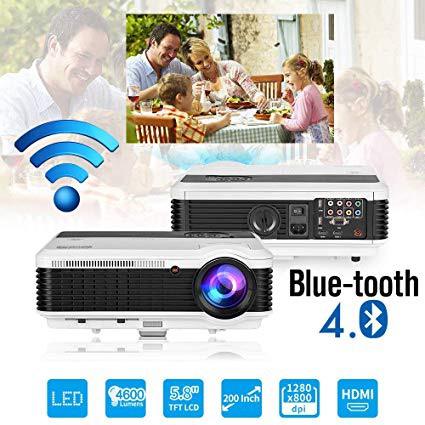 Bluetooth Projector Wireless LED 4600 Lumen Android Bluetooth Proyector Smart Wifi HD WXGA Home Theatre Projectors Airplay Miracast LCD 1080P Android Projector with Bluetooth HDMI USB VGA AV Audio Out