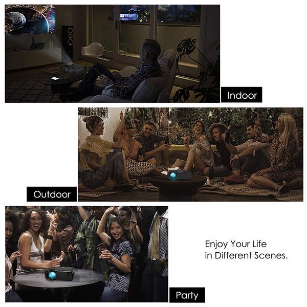ELEPHAS Mini Projector, Full HD 1080P and 180" Display, 3600 Lux Portable Home Theater Projector with 50,000 Hours LED Lamp Life, Compatible with USB/HD/SD/AV/VGA Interfaces