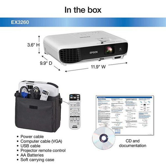 Epson EX3260 SVGA 3,300 lumens Color Brightness (Color Light Output) 3,300 lumens White Brightness (White Light Output) HDMI 3LCD Projector