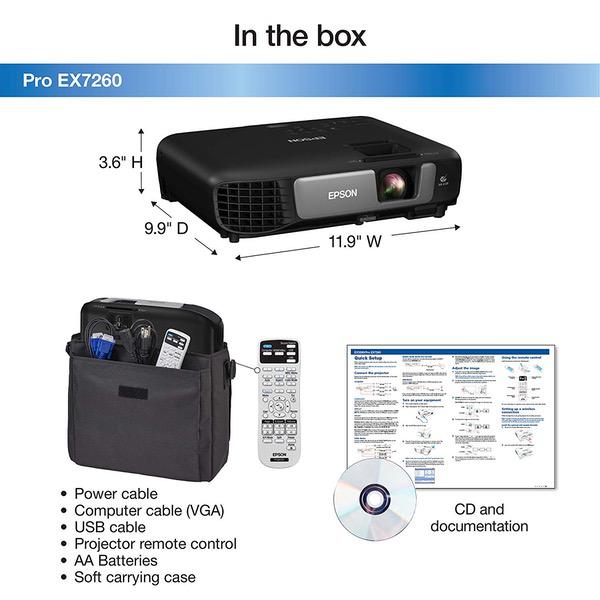 Epson Pro EX7260 WXGA 3,600 lumens color brightness (color light output) 3,600 lumens white brightness (white light output) wireless HDMI MHL 3LCD projector