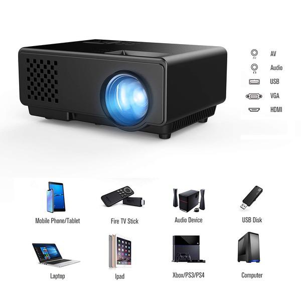 - MULTIMEDIA PORTABLE PROJECTOR: Movie projector has HDMI, AV, VGA, USB supports which allows it can be connected to PCs, laptops, smartphones, tablets, USB drives, DVD players, ROKU, Amazon Fire TV Stick, Xbox and Apple TV. ( Wireless HDMI Dongle not included)