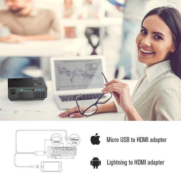 - Lower Fan Noise: iphone projectors are equipped with an innovative cooling system with heat dispersion, as well as a noise suppression technology which cuts fan sound in half
