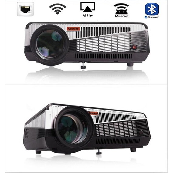 Gzunelic 4500 lumens Android Wifi 1080p Video Projector LCD LED Full HD Theater Proyector with Bluetooth Wireless Synchronize to Smart Phones by Airplay or Miracast Ideal for Home Entertainment