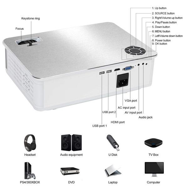 Home Theater Projector,HDEYE Native 1080p Full HD LED Video Projector - Up to 165 Inch Size Big Screen,3000 Lumens,Compatible with Fire TV Roku Sticks,USB,DVD,SD,PS4,Laptop (Silver)