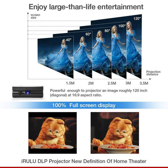 Mini DLP Movie Projector,iRULU HiBeam H60 2019 Upgrade Portable Projector,HDMI 1080P,VGA,AV,USB,Double Speaker Home Theater Projectors for Entertainment Gaming