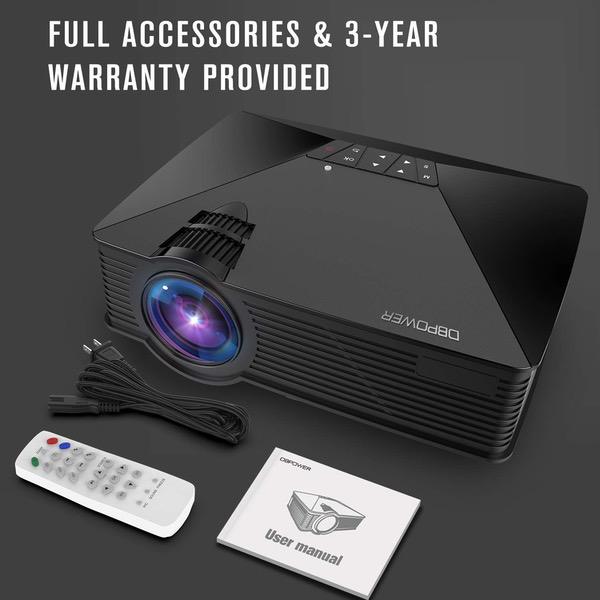 Make sure this fits by entering your model number. 2019 UPGRADED +50% LUMENS: This DBPOWER mini projector is 50% brighter and sharper than similar HDMI projectors in its market, giving you superior, crystal clear images. Note: this led projector is mainly for home entertainment, we do not recommend for PPTs or business presentations. MULTIMEDIA HOME THEATER VIDEO PROJECTOR: Support connection with TVs, PCs, laptops, USB sticks, TF cards (max 32GB), DVD players, Amazon Fire TV Stick, smartphones & tablets. A Wi-Fi display dongle (not included) is required to connect the projector with smartphones and tablets. GREAT WATCHING EXPERIENCE: Projection size: 32-176 inches with projection distance 1-3m. Max Supported resolution: 1080P. Speaker: built in dual stereo speakers. 50000Hours Lamp Life means you’ll get years of use from this projector. REDUCED FAN NOSISE: As a significant improvement, the projector is equipped with a new cooling system which can cuts fan noise by half. You don't need to bear the loud noise anymore when watching video. 100% Satisfaction Guarantee: DBPOWER team offers every customer 100% satisfaction guarantee. If you have any problems, you can contact our professional technical team for help anytime. We also offer 3 Year warranty.