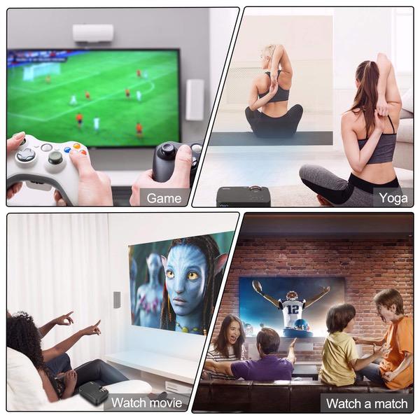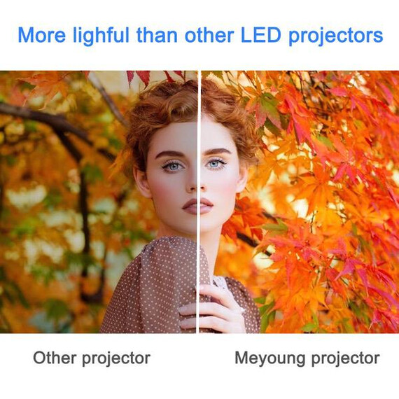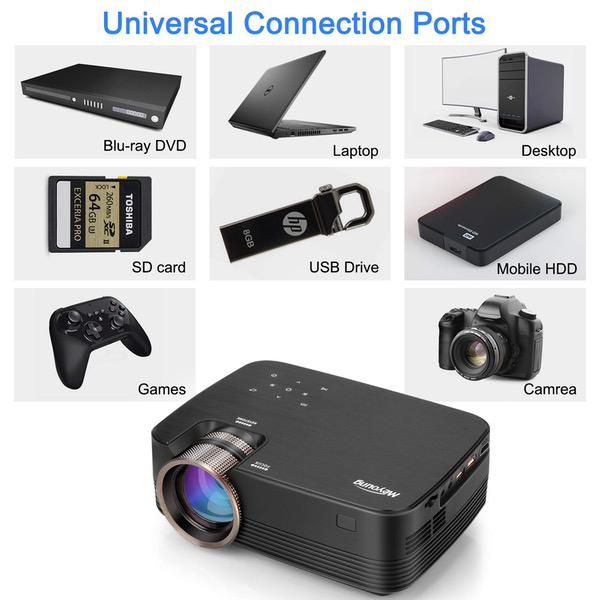 Make sure this fits by entering your model number. Meyoung portable projector perfect for connecting to any HDMI-enabled devices such as PCs, Laptops, Fire TV, Tablets, Blue-ray DVD player, Smartphones, Media players (Music, Pictures, Video, TXT). Also Compatible with SD Card, USB Flash Drive, Mobile HDD. Comes with built-in loud speaker powerful amplifier. Meyoung home portable projector can display Music, Pictures, Videos from Smartphones (You need to purchase Special Cords). Supports Video Games in HD by the projector,such as PS4. Enjoying games on 50~130 inches BIG screen! High Price-performance Projector. Watching movies and football matches with super richer colors clear image in dark night, in courtyard, party, good gift for family and friends! Resolution: 800 x 600 (native), 1200 lumens, Throw screen range: 50-130 inch, Throw Distance: 4.9~13.12 feet, Throw Ratio: 1.4:1, Aspect Ratio: 4:3/16:9 Brushed texture, touch panel, focusing wheel, sparkling ribbed road, more precise focus. Touch button, no dust, one touch, white light, silky feel.