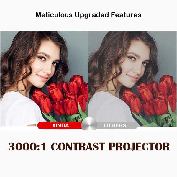 Mini Video Projector, XINDA 2800Lux Video Projector with 187" Display 50,000 Hours LED Full HD Video Projector 1080P,Compatible with Fire TV Stick,HDMI, VGA, USB, AV, SD for Home Theate … …