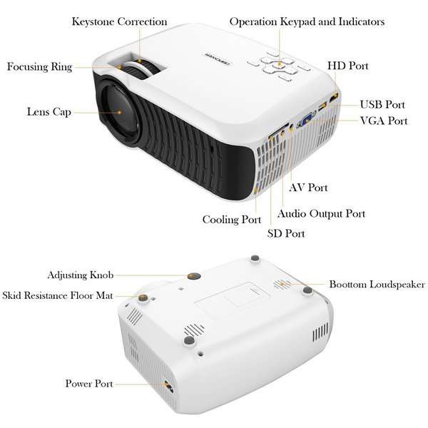 Movie Projector, DBPOWER 2019 Newest 120 ANSI LCD Video Projector Free HDMI 176" Display 50,000 Hours LED Portable Projector Support 1080P, Compatible with AV, USB, SD, Amazon Fire TV Stick