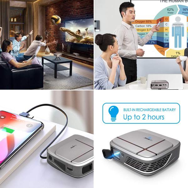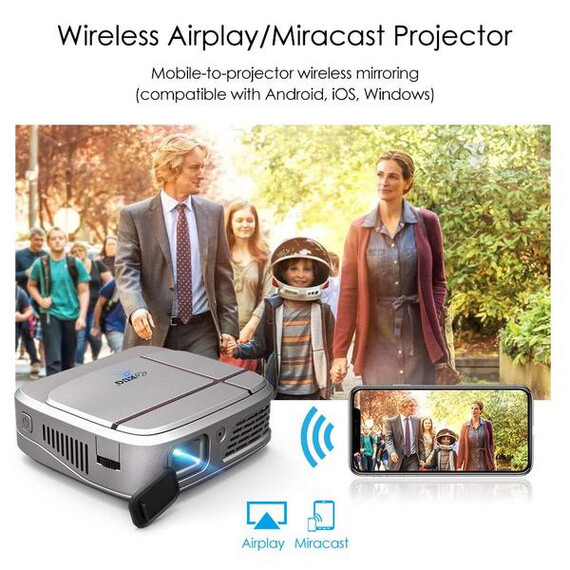 Pico DLP Projector with WiFi Wireless Screen Mirror 3300 Led Lumen HD Home Theater Projector for Gaming Smartphone iPad HDMI Multimedia Mini DLP Projector Portable Outdoor Travel Movie Night
