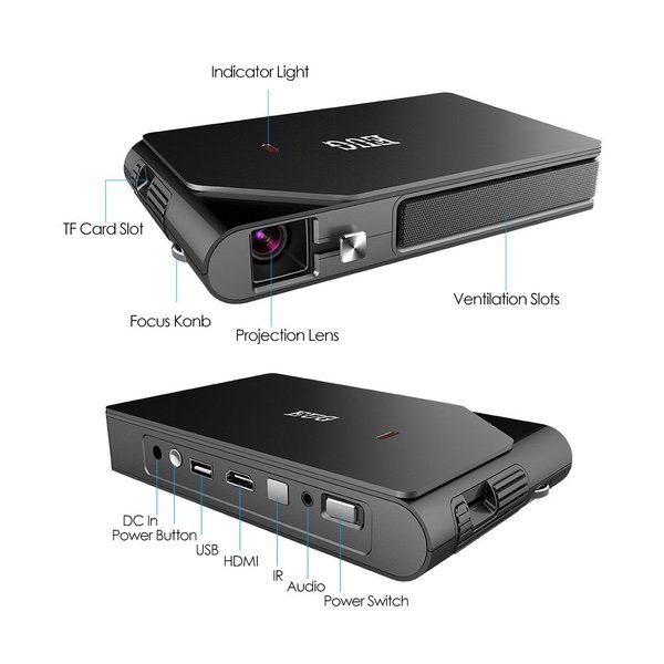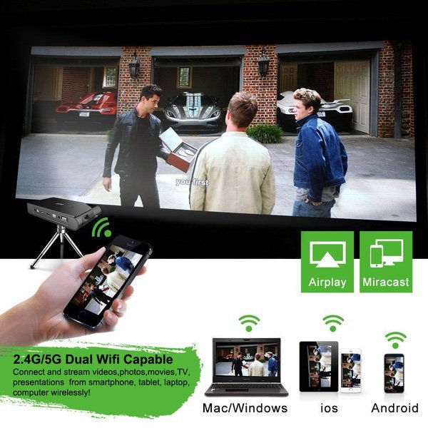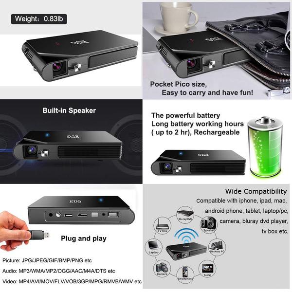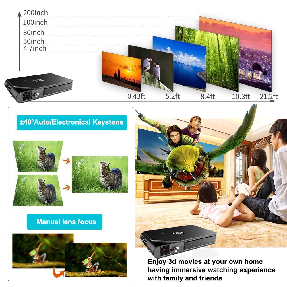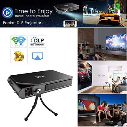 Pocket Pico WiFi 3D DLP Projector HD Mini Portable Outdoor Home Theater LED Wireless Projector with Built-in Battery Speakers HDMI USB Audio SD Card Slot for Smartphones Tablet DVD Camera Slides