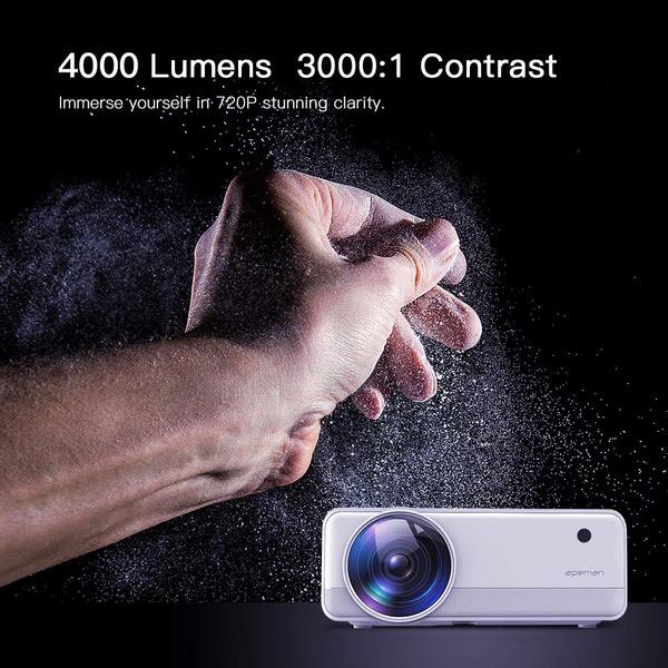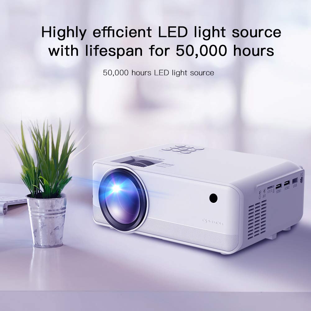 Projector APEMAN Mini Projector 4000 Lumen 720p Native Resolution Portable LED with Dual Built-in Speakers 50000 Hrs Support HDMI/Micro SD/USB, Laptop/TV Stick/Phone for Home Movie Time[2019 Model]