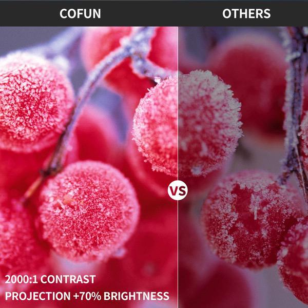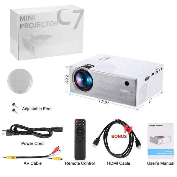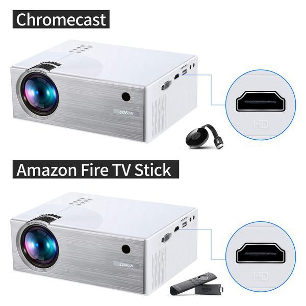 Make sure this fits by entering your model number. ►【SUPERIOR CLARITY AND CONTRAST】: COFUN Projector’s sharper and brighter images by 4.0” TFT LCD Display True 800*480Pixel. It Advanced Color by MStar. LED lighting +70% and sharper images +50% than ordinary projector. Supporting 1920x1080P, Contrast ratio 2000:1 which is the most ideal for home entertainment. Including home theater and gaming. Not recommend for PPT or office presentation purposes. ►【MULTIMEDIA VERSATILITY】: COFUN Projector support HDMI/USB/AV/VGA/3.5mm Headphone Jack , which allows you to use it with laptops/PC/TV Box/Chrome Book/Tablets/USB flash drives /iOS/Android (HDMI Cable included FREE). If your device doesn’t support HDMI there’s also USB/MHL connectivity. Note: Chromecast is supported. ►【BIG SCREEN HOME CINEMA PROJECTOR】: Supports 28 to 120 inches projection size with distance 3.0-11.6 feet. Easy to create a private home cinema, enjoy movies with your friends and families ! ►【FAN NOISE SUPPRESSION SYSTEM】: COFUN video projector has a newly-enhanced COOLING and FAN SYSTEM with heat dispersion, with noise suppression technology makes 50% QUIETER. It helps you enjoy more comfortable home theater. ►【3-YEAR WARRANTY】: COFUN Projector offer customers 3-YEAR WARRANTY with professional customer service & technical support. Our team will reply you soon 24/7. At COFUN, our goal is to deliver a enjoyable home theater and provide top quality service. If you are satisfied with your purchase and services provided, please do spare some time to share with other customers. It will be much helpful !