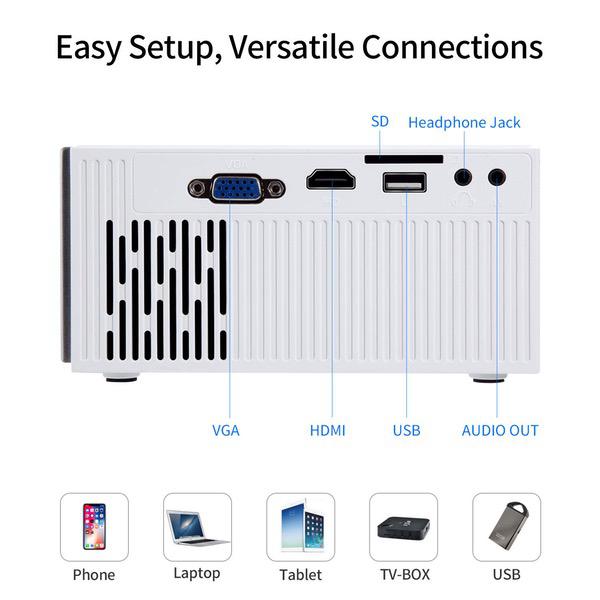 This projector actually exceeded my expectation! Comparing to those that are at $200 levels, this projector has the same picture quality with a little dimmer Lux, which is totally fine with my purpose since I used it primarily with my lights off. The remote control is ok but I normally just adjust the settings with the buttons on top of the projector. The finish is plastic-ish, it would be great if it’s made of aluminum, but I’m not a super picky person, given that this project only cost half of the price of other traditional ones.