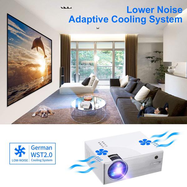 Just got it today. Smaller and lighter than what I expected which is good. Easy to set up. The picture quality and lumin is okay for the price.Only has basic functions. No electric focus function. You have to manually adjust the focus point. Also, no distortion compensation function in horizontal level if you want to have an angle to left or right. You have to put it in the center position to make the projection looks good which is not convenient. The fan sound level is normal. Overall, it has basic functions and sever basic projection well. Play as a toy is good enough.