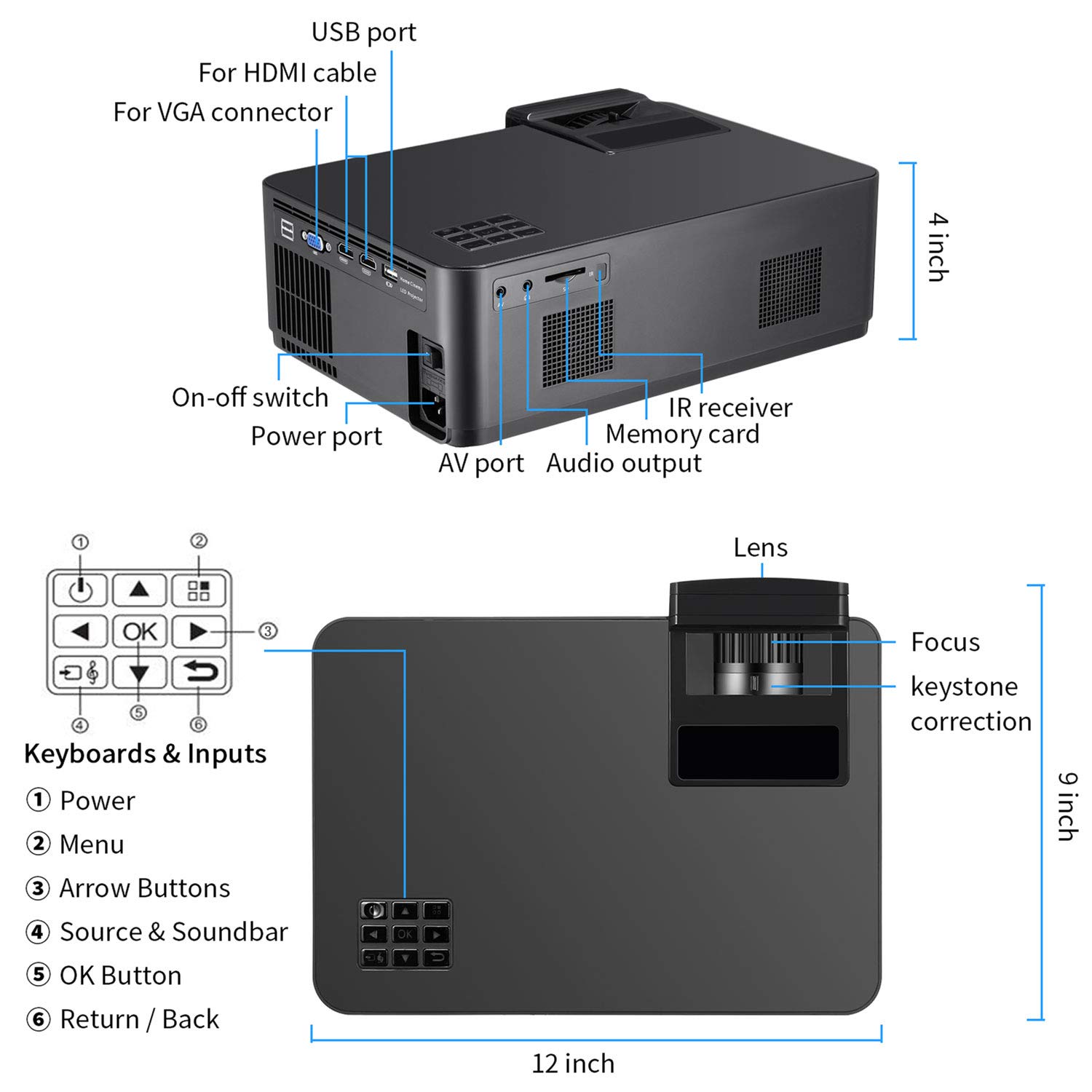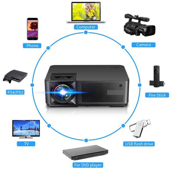 - 【 Multimedia Connection 】 : Comes with HDMI cable, great for playing games or watching movies at home & in your backyard. This LED projector is equipped with a variety of inputs: HDMI*2, VGA, AV, USB and Micro SD slot. Easily connect it to your PS4/PS3, PC, laptop, DVD player, Xbox, etc., this video projector is your best home entertainment system.