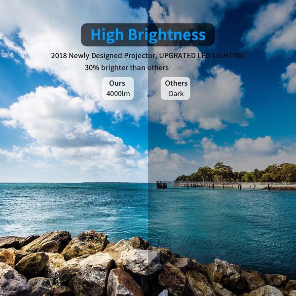 - 【 Newly Designed Home Projector 】: The full hd video projector utilizes an upgraded LED light source and LCD display technology, projecting a sharper and clearer image. The brightness goes up to 4000 lumens and it supports full hd 1080p with native resolution: 1280 x 768 pixels for your HD movie enjoyment. Contrast ration: 3000:1