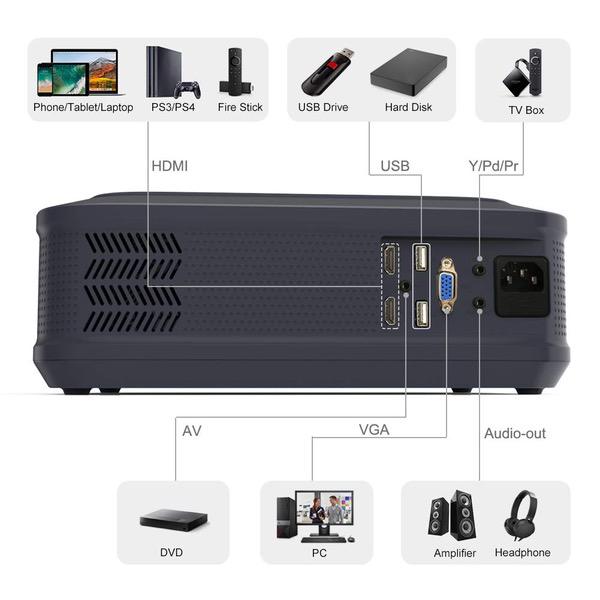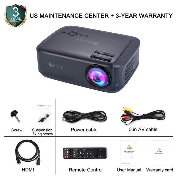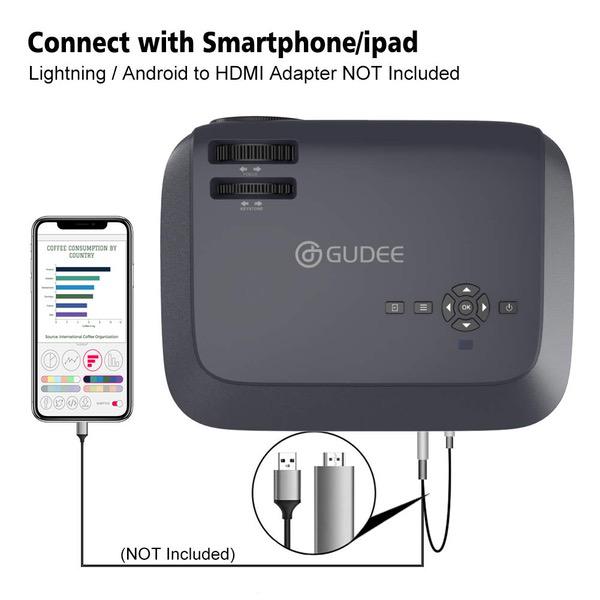 Projector, GuDee Full HD Video Projector for Business PowerPoint Presentations, 1080P Home Movie Projector for Laptop, Smartphone, Fire TV Stick, PS4, HDMI, USB