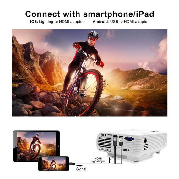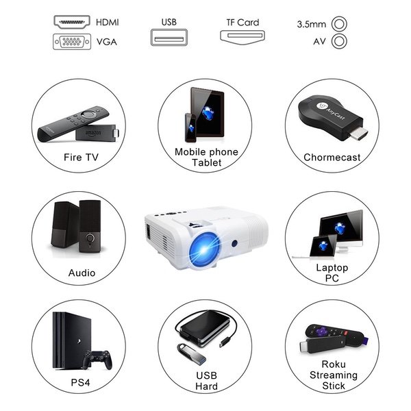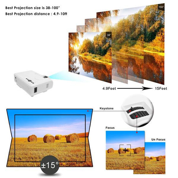 Make sure this fits by entering your model number. ❤ Superior Visual Experience:50% Lumens 480*800 NATIVE RESOLUTIONS.Advanced Color Engine provides accurate colors and great contrast for images,Support 1080P, Aspect Ratio: 4:3/16:9, Contrast Ratio: 2000:1 ❤ Multiple Devices Connection: This video projector can be supports Fire TV Stick/ Blu-ray players /DVD Player/ PS3/ WII /Xbox/ TV box / PC / Laptop/ Camera, offering great versatility in what you can display with this projector. NOTE: Connect Phone/Pad need Lighting to HDMI adapter cable, Android phone (support MHL function) need MHL cable. ❤ Enjoy Big Screen Pleasure: The mini projector throw up 38” to 150” inches with distance 4.9-15 feet, and the best viewing distance is 10 feet with 100 inch.PoFun Home Theater projector utilizes LED light source and LCD display technology, this ensures lower energy than conventional bulbs and also longer life. ❤ Lower Noise:Updated Dual Cooling System provides awesome heat dispersion and lower noise.You do not need to worry about the projector will be too hot during use.Complete your home entertainment experience with 2 powerful built-in 2W speaker.The advanced bulb design is highly energy efficient, thereby using less energy. ❤ Satisfaction WARRANTY: 12-month warranty (REPLACEMENT OR REFUND) and 7*24 customer service. If your projector has any quality issues, please contact our customer service immediately. We will definately help you solve it. our goal is to deliver impeccable customer service and impeccable home entertainment products.