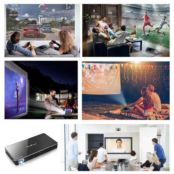Projector,PoFun Mini Portable Bluetooth Video Andriod 7.1 Projector for Phone,Pad and Laptop,Mobile Projector with 120 inch Display,Pico HD Projector Include Warranty Support WI-FI