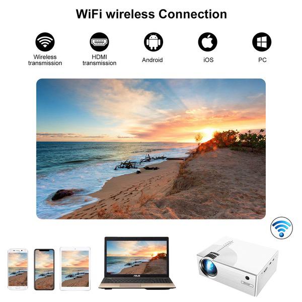 - ❤[Wireless Connection Technology]: NO longer need any Dongle, Adapter or Cables! This Queretek projector can smoothly transmit the data of smart phones to big screen for projection display through Airplay/Miracast/DLNA/Ushare. Just Connect your devices and the projector to the signal, then the projector can project same screen directly from your smart phones, tablet, laptop, PC, etc. Especially when the HDMI cable is unavailable ,this wireless projector is helpful !