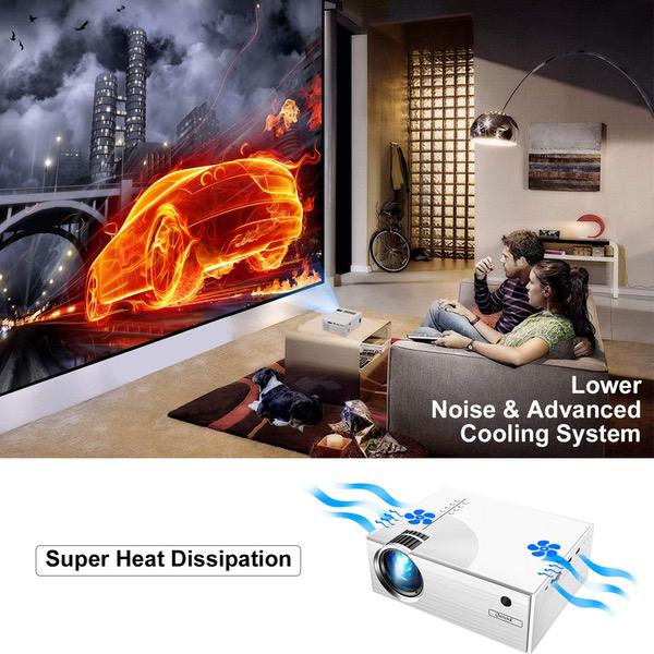 - ❤[Lower noise & Longer lamp life]:Queretek projectors are equipped with a leading cooling system with awesome heat dispersion, which cut 50% noise. The LED lamp life was extended to 50,000 hours. It will provide you with more quiet and comfortable home theater environment when enjoy your Family Prime Time.