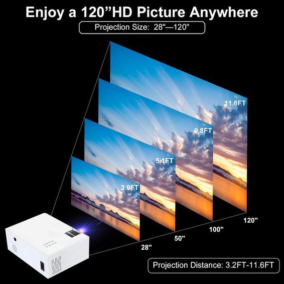 - ❤[Higher Clarity & Resolution for Better Visual Experience]: Queretek Projector utilizes the brand new LED light source and LCD display technology, which significantly reduces light attenuation and provides +80% brightness and sharper image +30% than ordinary projector. Supported 1080P, Aspect Ratio: 4:3/16:9, Contrast Ratio: 2000:1,50-120” big screen display at the distance of 1.0M-3.5M. (the recommended viewing distance is 3.0M with 100”display.) It is ideal HD projector for home entertainment