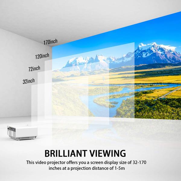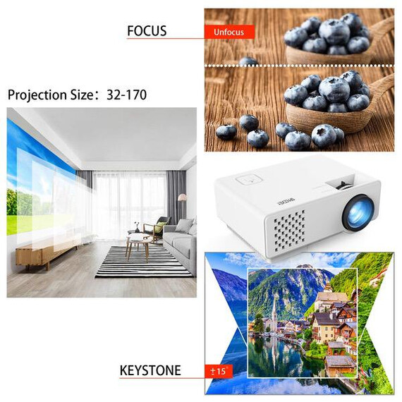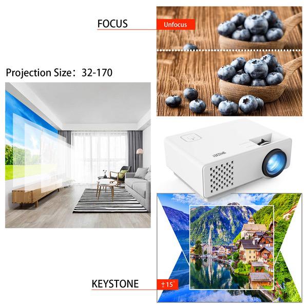 Make sure this fits by entering your model number. LATEST UPGRADED VERSION: This portable upgraded projector brings you a 50% brighter and sharper viewing experience than other comparable mini projectors. COMPATIBLE DEVICES: This mini projector supports smartphones, tablets, PCs, laptops, DVD players,USB drives, Xbox, Apple TV, ROKU and Amazon Fire TV Stick, NOTE: When use with smartphones, a Wi-Fi display dongle or HDMI adapter is not included. OPTIMUM DISTANCE: The optimum projector distance is 2-2.5m and the display is about 120''. If you want the image size of 32" to 170'', the distance is 1-5m. LOW NOISE & EFFICIENT ENERGY: This projector has improved fan, so the noise is lower and the heat dispersion is great. Also the new bulb uses less energy. WARRANTY: You have 3-YEAR warranty and professional customer service. If you do not like it, we will full refund. If any issue, we will resolve it!