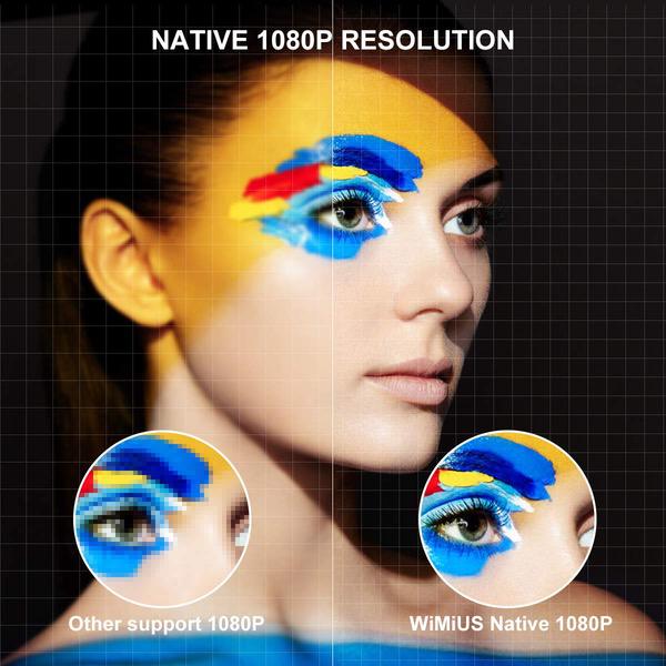 Projector, WiMiUS P20 Native 1080P LED Projector, 5000 Lux Movie Projector Support 4K Video 300" Display ±50°Digital Keystone Correction 70,000 Hrs for Home Entertainment & PPT Business Presentation