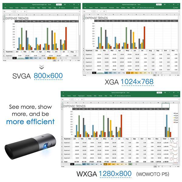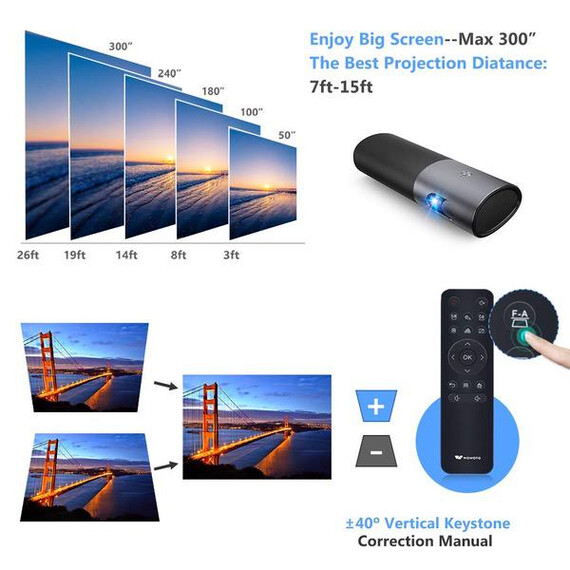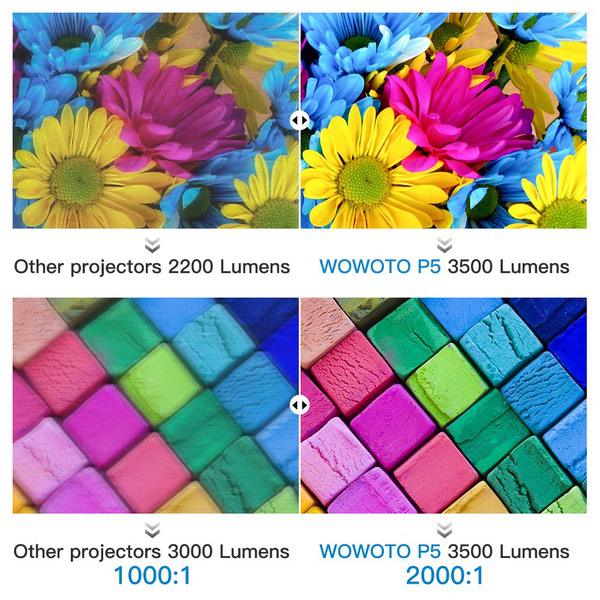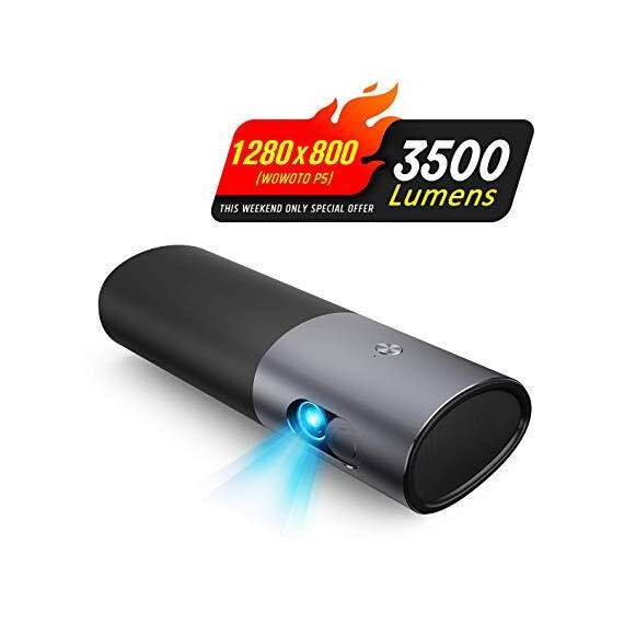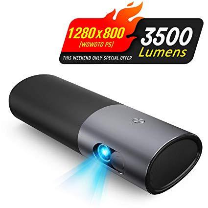 Projector WOWOTO P5 3500 Lumens 1280x800 Built-in Battery 15600mAh 3D Portable Video Projectors with Double Speakers for Media Home Theater Supporting 1080P Wireless Screen Share with Android System
